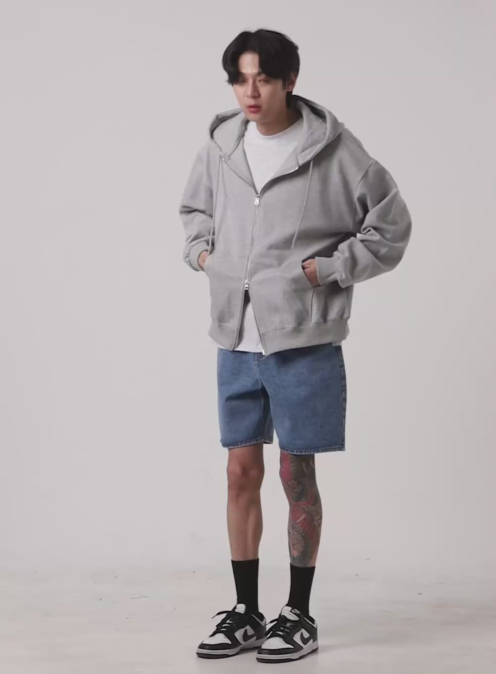 Elevate your casual style with our Men’s Basic Hoodie Jacket in Gray. Perfect for lounging or back to school, this zip-up jacket features a hood and a solid print. Stay comfortable with its loose fit design.