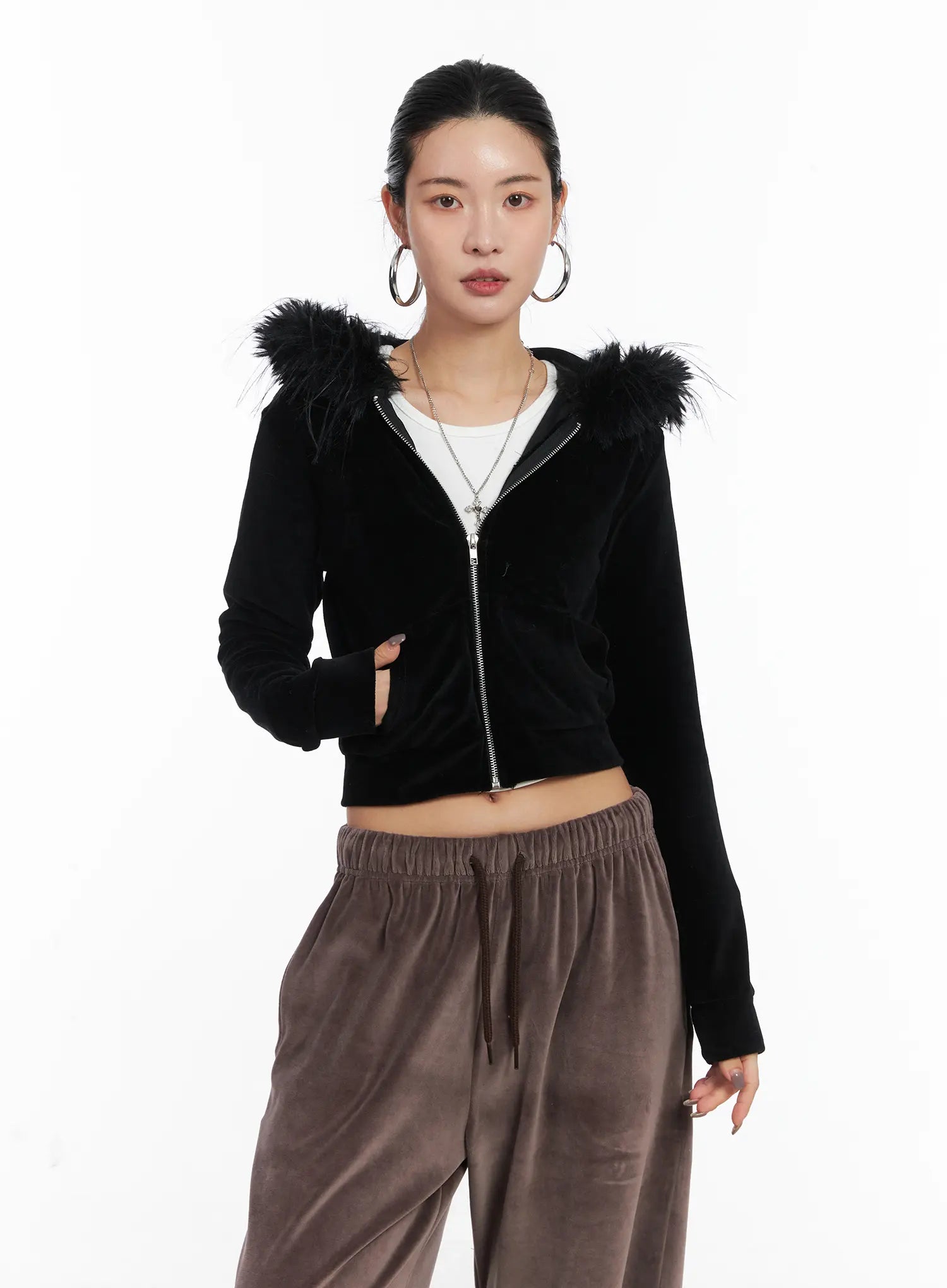 Product Detail Stretchability No Moderate Good Thickness Thin Moderate Thick Transparency Opaque Some Partial Lining No Slight Lined Fit Guide Runs small True to size Runs large Style : Acubi, K Occasion : Back to school Type : Sweat Detail : Zip up, Fur trimmed, Hood Print : Solid Material : Cotton, Polyester Sleeve :…
